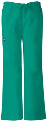 A low-rise, straight leg, drawstring pant with an elastic waist features a contemporary fit. Two front pockets, a d-ring on the left cargo pocket, an extra cargo pocket and one scissor pocket, leg seaming detail at the knee, five belt loops and double needle top stitching complete this extraordinary pant. Inseam: 31"